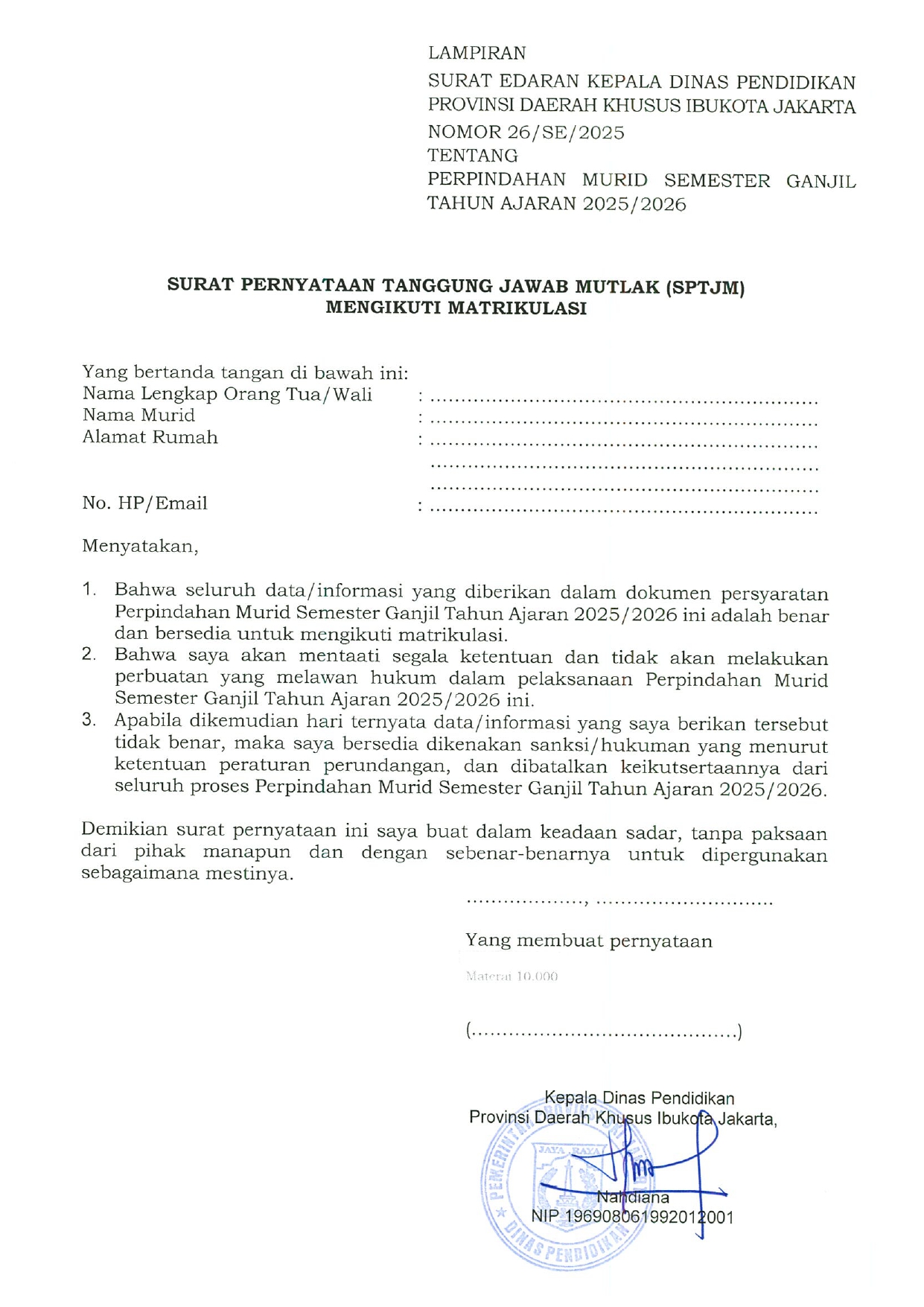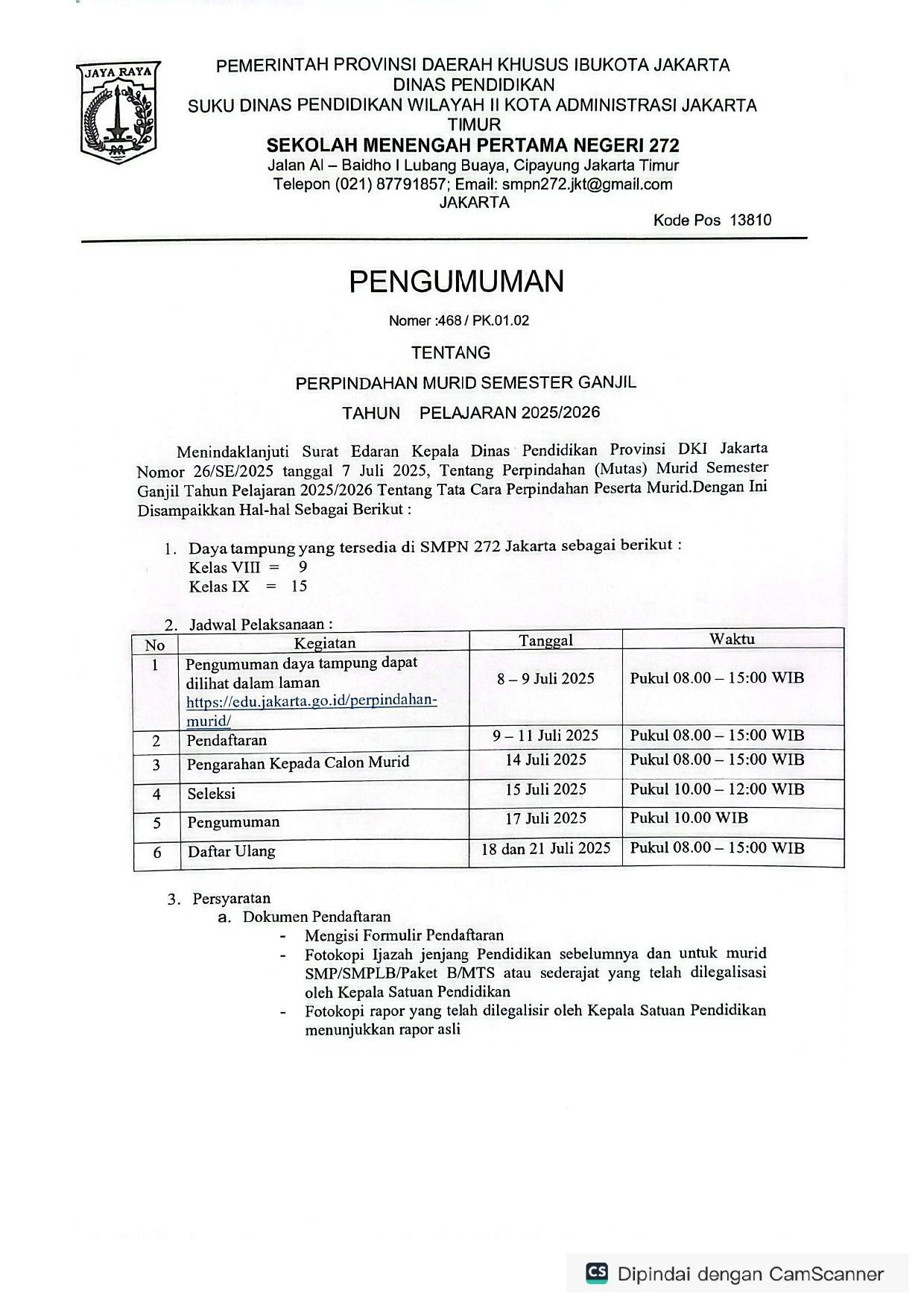 INFO PERPINDAHAN (MUTASI) MURID SEMESTER GANJIL TP 2025/2026